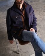 • High stand collar with suede contrast