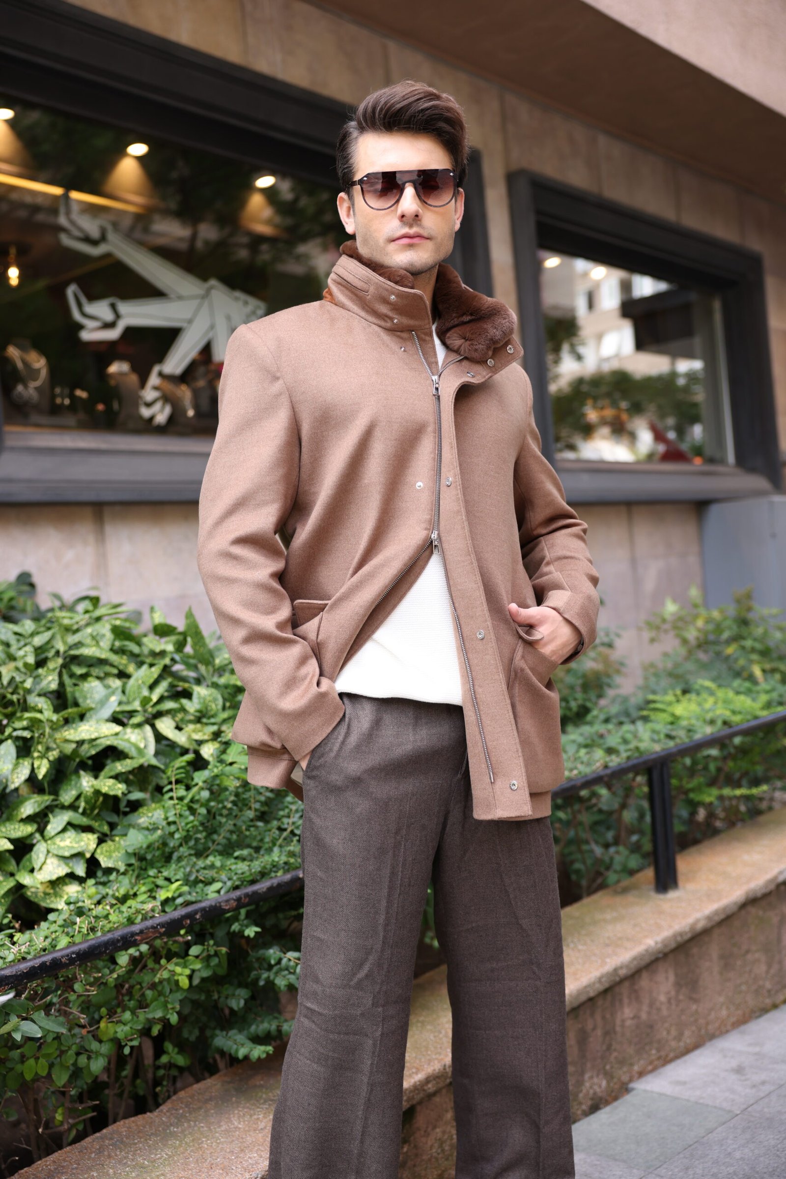 Step into winter ’24 wrapped in luxury with our Winter Solstice Cashmere Coat. This piece merges sophistication and utility, crafted meticulously for the modern man. Drape yourself in its foliage brown hue, radiating an earthy elegance that’s complemented by a composition of 33% cashmere – your bastion against the crisp winter chill. Enhanced with a drawstring hood and a plush Rex Fur internal collar, every element is a nod to style infused with warmth.