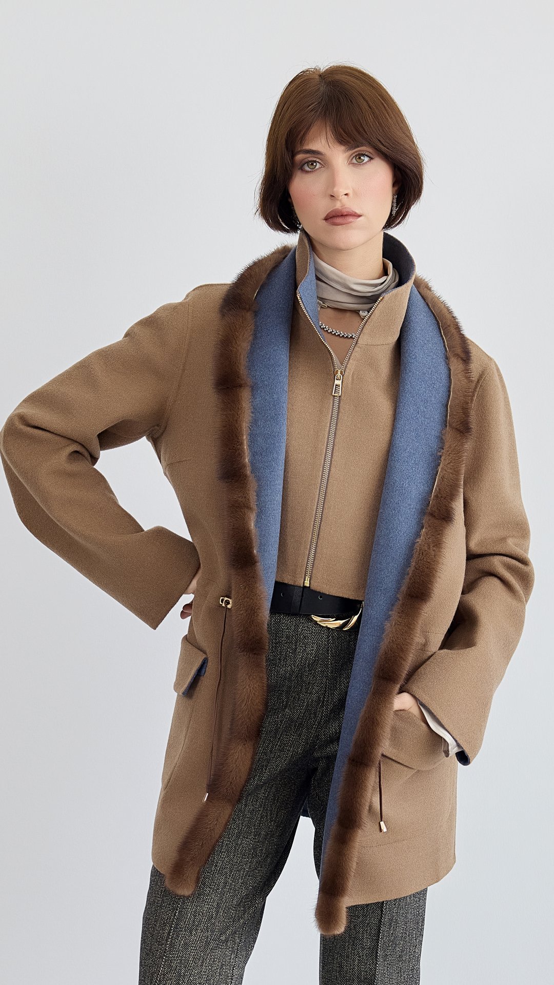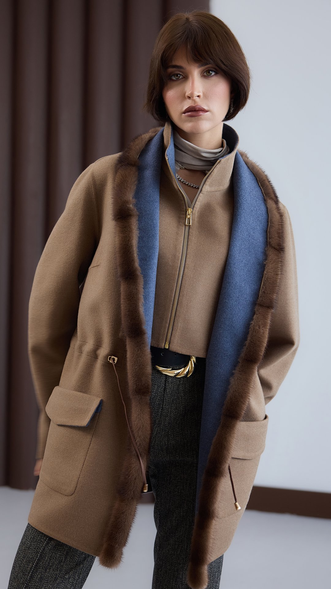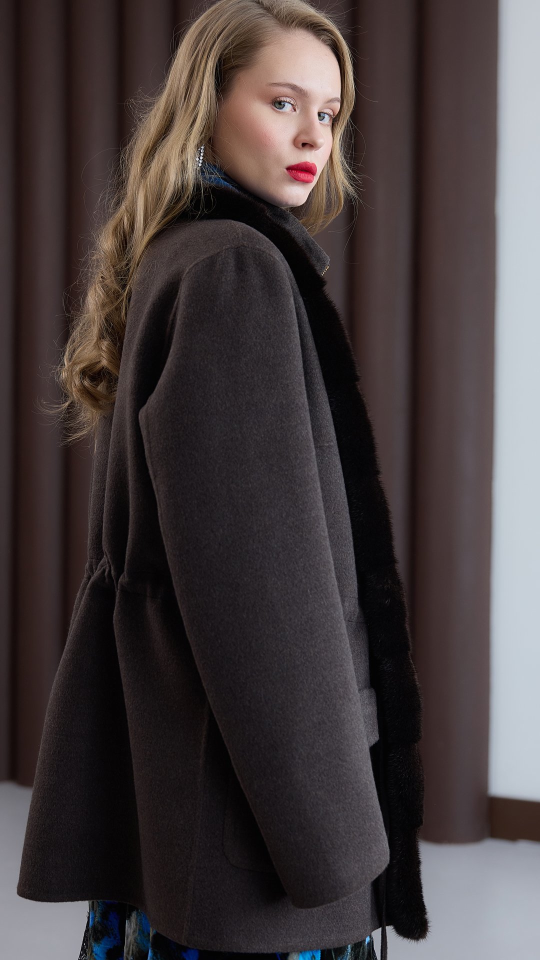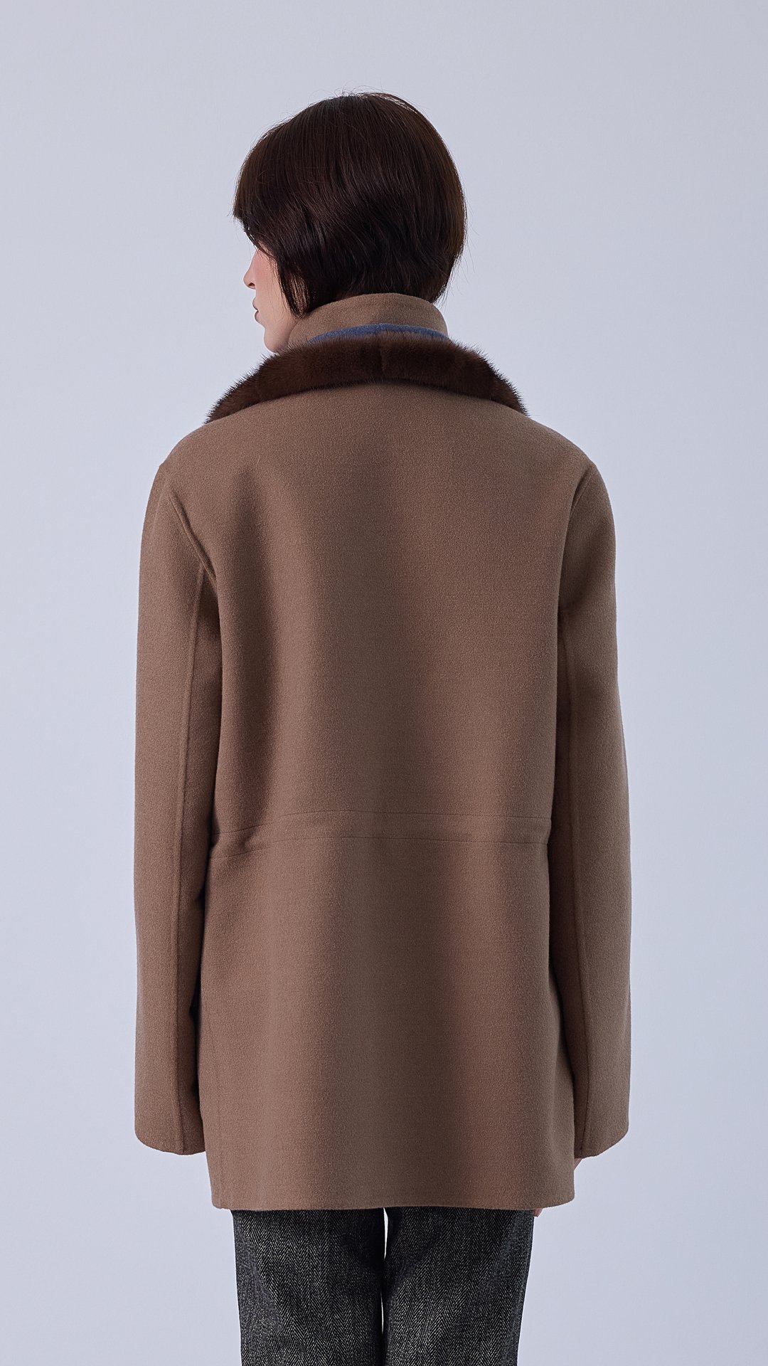 Crafted from Loro Piana fabric, this coat is elevated by premium Finnish mink fur, offering a rich and distinguished finish.