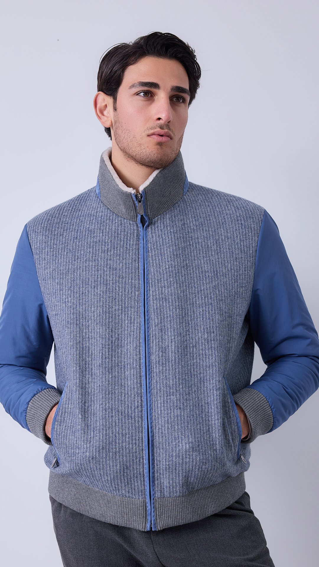 A refined hybrid jacket combining natural materials with technical performance. Designed for everyday wear with a balanced structure, offering warmth, comfort, and ease.