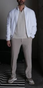 A lightweight summer bomber crafted from crisp linen, offering a clean, effortless silhouette with quiet refinement.