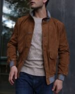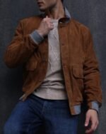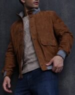 A refined full-suede winter jacket elevated with subtle mixed-material trims for a modern, luxurious finish.