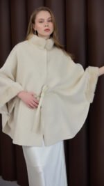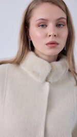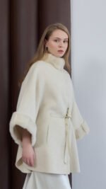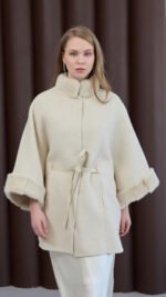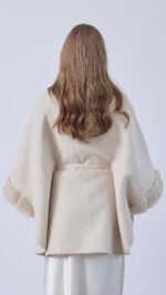 Wool–cashmere jacket finished with mink at the collar and cuffs.