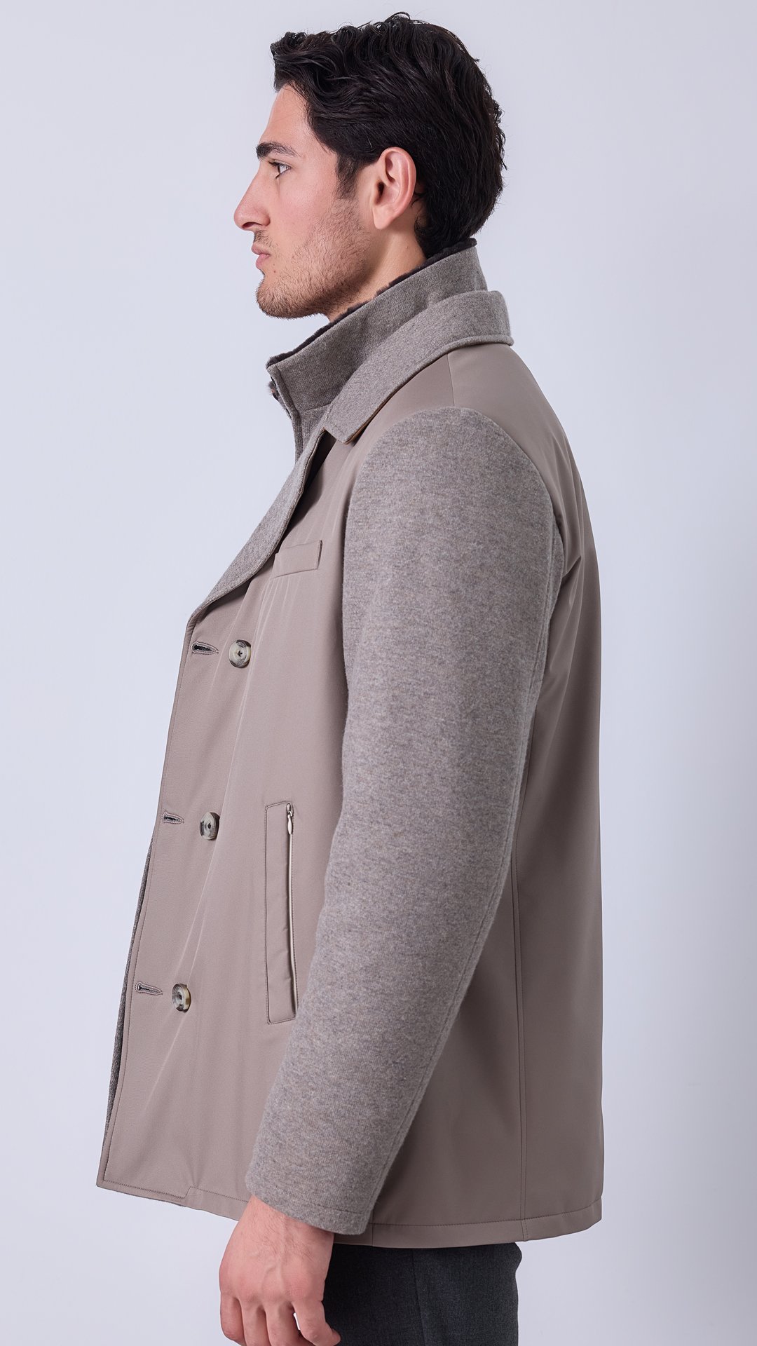 A formal straight-cut jacket designed with a layered construction for versatility and everyday refinement.