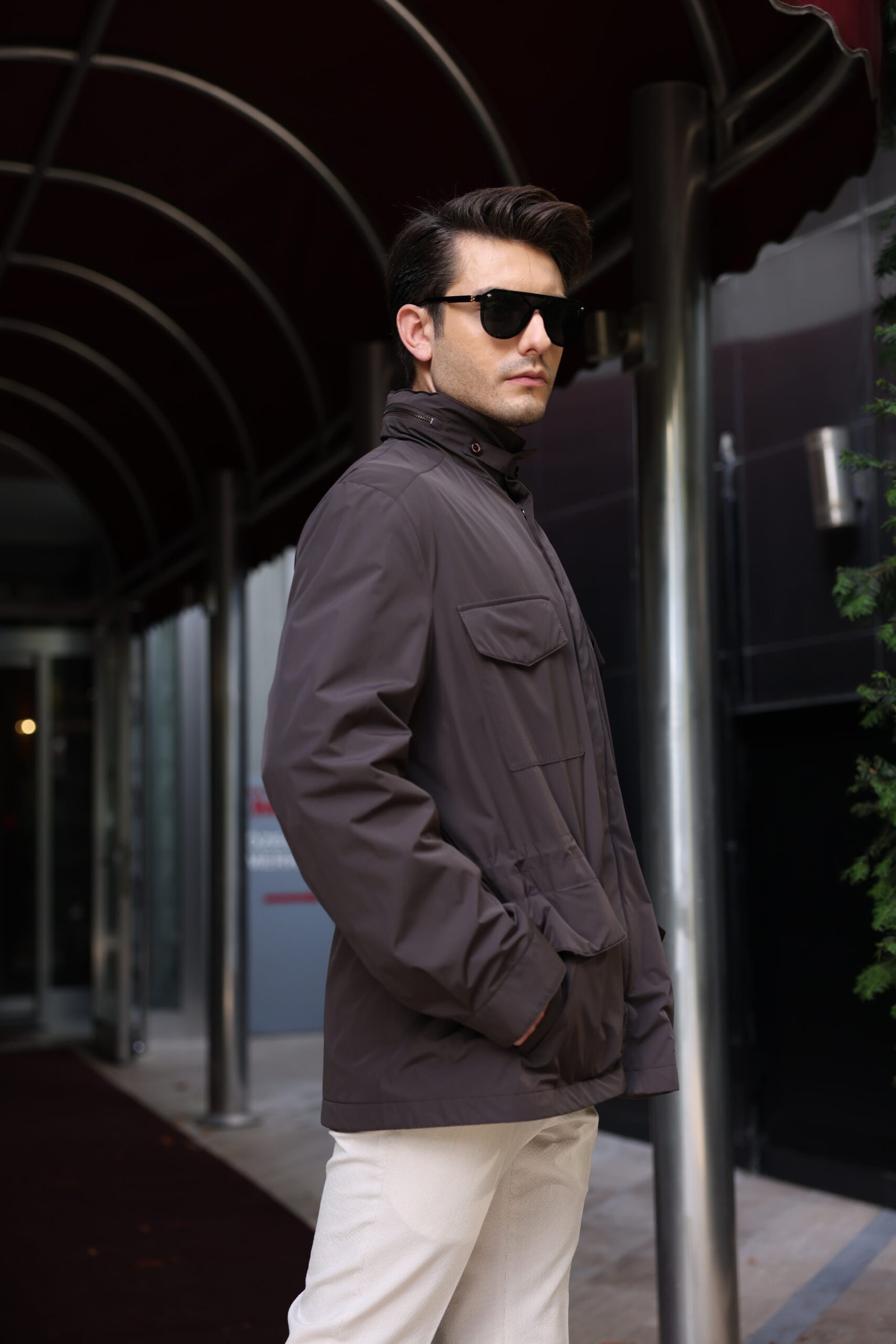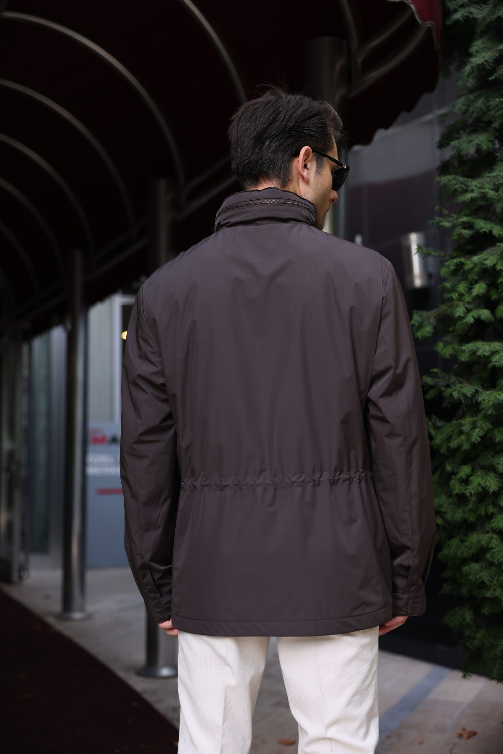 This lightweight jacket made with LOROPIANA material features a sleek design in a sophisticated black color.