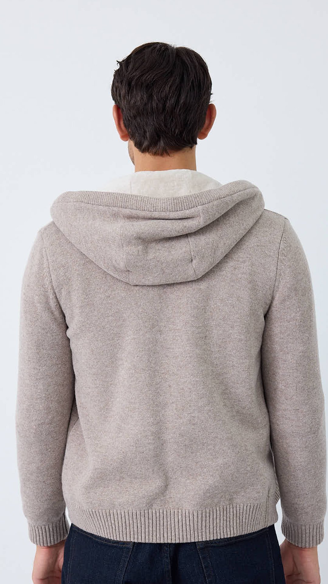 A refined casual jacket combining soft cashmere knit with a fully lined Rex fur interior. Designed for warmth and comfort while maintaining a clean, modern silhouette suitable for everyday wear.