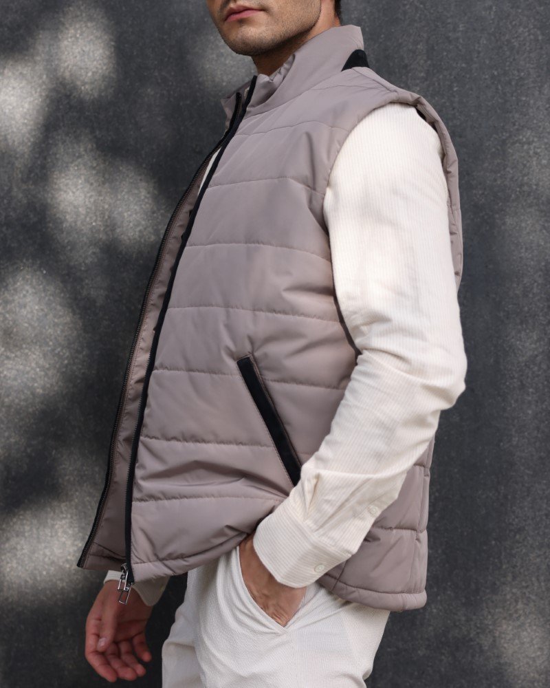 A refined lightweight puffer vest crafted for understated warmth with a sleek, water-resistant finish.